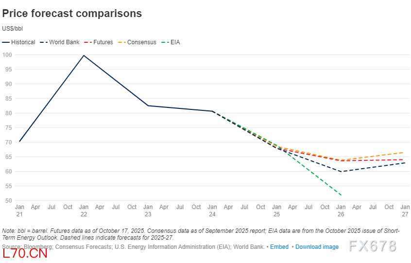 (不同机构的油价预测图)