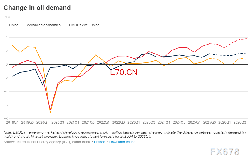 发达经济体的石油消费量预计保持稳定,而中国因电动和混合动力汽车加速普及,石油需求增长可能放缓。印度是全球石油需求增长的主要贡献者之一,其需求增长预计将由液化石油气(LPG)、汽油、石脑油和柴油推动。