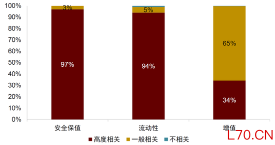 要回答这个问题,我们首先看看央行外汇储备管理原则。根据世界银行的调查,大多数中央银行认为安全性和流动性是主要原则,只有三分之一的央行认为增值很重要。也就是说,外汇储备管理首先更看重安全性和流动性,而资产收益的重要性靠后。这里的安全性指的是资产保值(capital preservation)。根据BIS的定义,外汇管理中的安全性包括低波动、风险可控、价格下跌概率低[3]。世界黄金协会的调研也体现了这个特点,央行持有黄金的主要原因是对抗通胀、注重危机期间的表现、实现资产组合多元化,都是安全性的体现。地缘政治风险也是央行持有黄金的决定因素,但并不靠前。
