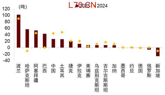 注:数据来自世界黄金协会注2025年2月25日至2025年5月20日开展的《2025年央行黄金储备调查》