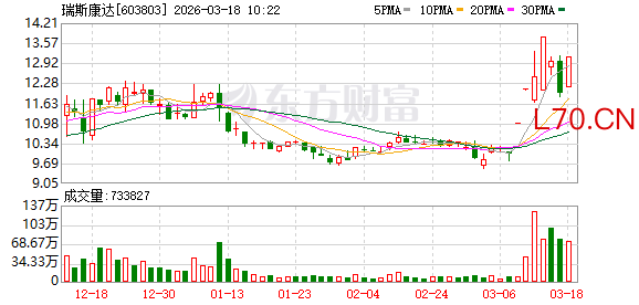 瑞斯康达再度涨停,7个交易日内录得4个涨停,累计涨幅为31.30%,累计换手率为112.51%。截至9:44,该股今日成交量4155.65万股,成交金额5.26亿元,换手率9.78%。最新A股总市值达55.79亿元。