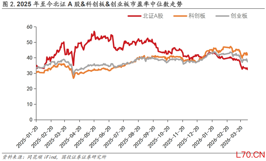 估值方面,截至2026年4月3日,北证A股市盈率中位数为44.5X;同期科创板、创业板PE中位数分别为37.91X、37.6X。