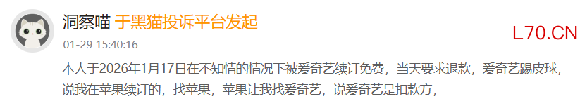 消费者反映,在涉及支付平台时,付费用户的退款要求经常被“踢皮球”。有不少苹果手机用户提及,在要求爱奇艺退款时,因扣费的支付渠道是苹果支付,爱奇艺表示需要找苹果方面退款。联系上苹果后,苹果则表示爱奇艺是扣款方,苹果方面不予退款。