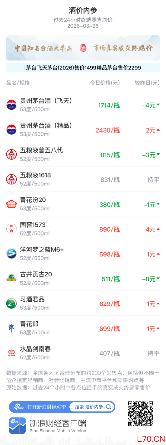 新浪财经“酒价内参”重磅上线 知名白酒真实市场价尽在掌握