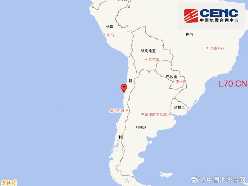 智利北部附近海域发生6.3级地震,震源深度20千米
