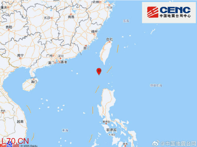 中国台湾附近发生4.4级左右地震