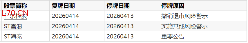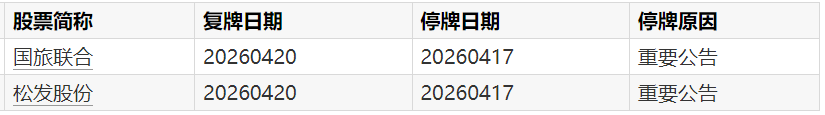 A股复牌提示:2股今日复牌