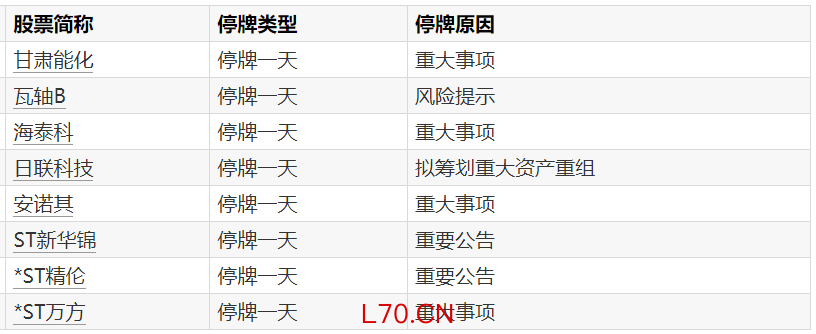 A股停牌提示:8股今日停牌